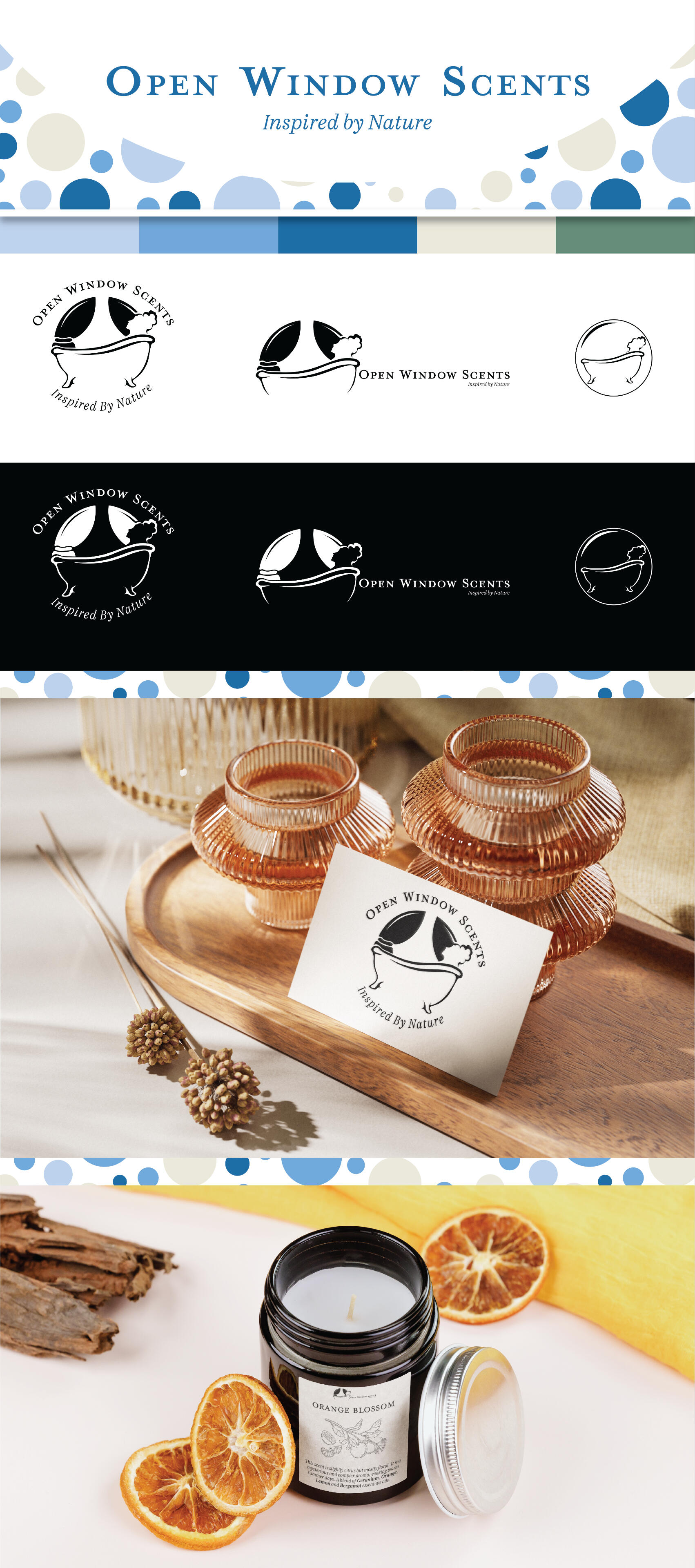 Redesigning Open Window Scents branding with a full logo set (primary, secondary, and tertiary)