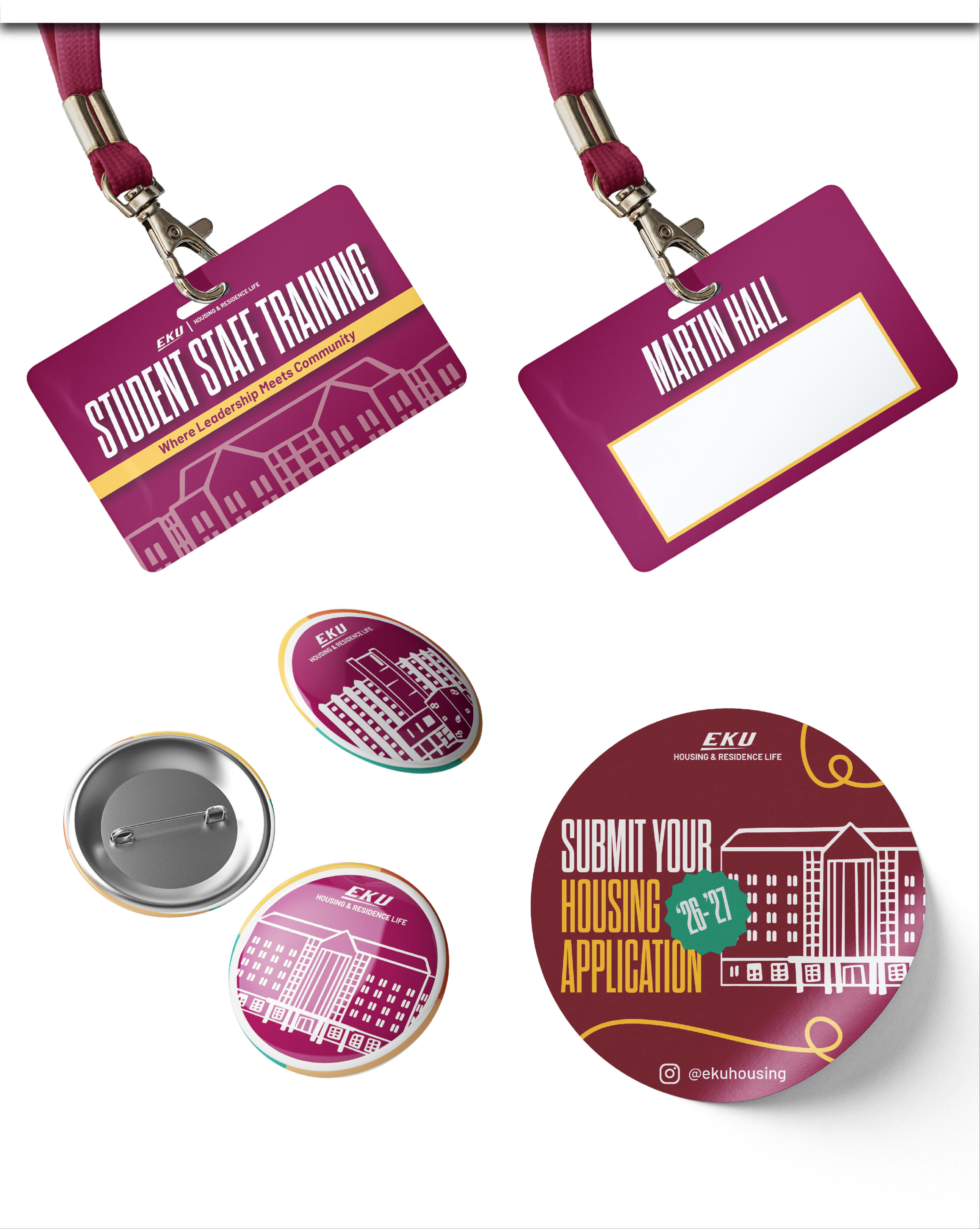 Marketing and advertising work for EKU Housing and Residence Life, including social media posts, flyers, posters, event work, and more.