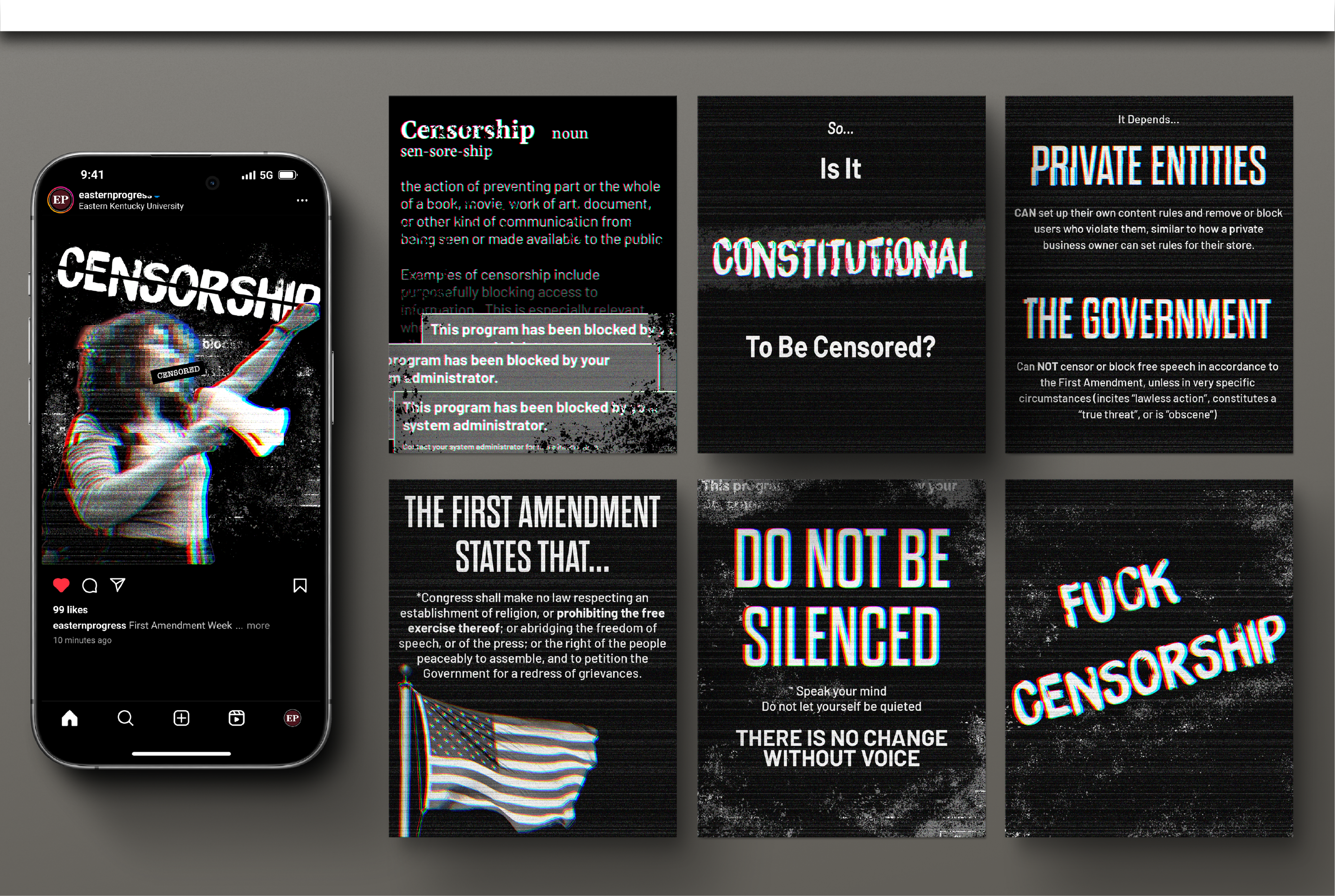 Creating a social media campaign for EKU's First Amendment Week 2026. Includes a full slide deck and story animation.